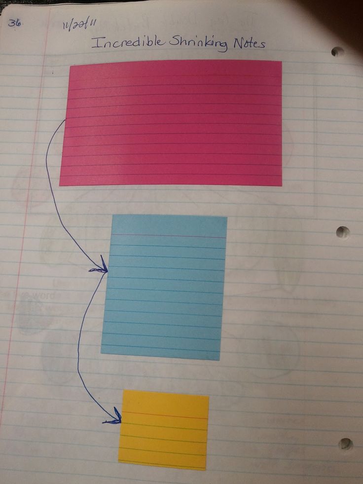 Summarising – starting with the largest post-it and gradually decreasing their size down the page. The children can fit less and less wordage in each one, ending up with a few key points.